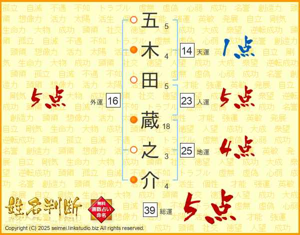 五木田蔵之介さんの総運は39画の5点!