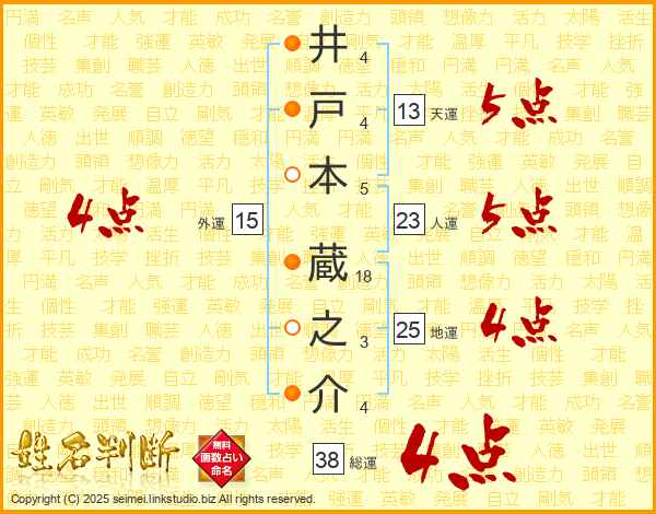 井戸本蔵之介さんの総運は38画の4点!
