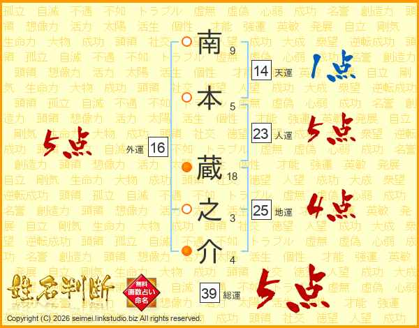 南(9画)本(5画) 蔵(18画)之(3画)介(4画)