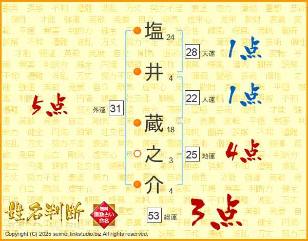 塩(24画)井(4画) 蔵(18画)之(3画)介(4画)