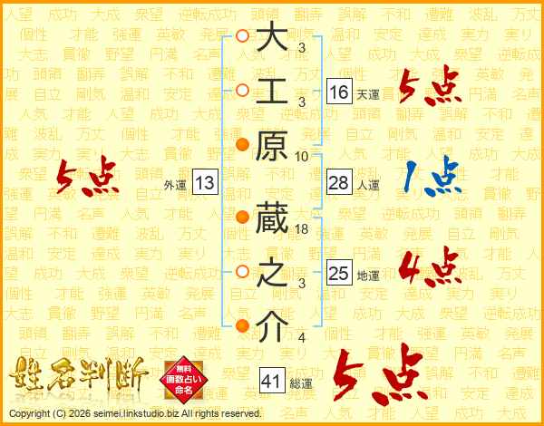 大工原蔵之介さんの総運は41画の5点!