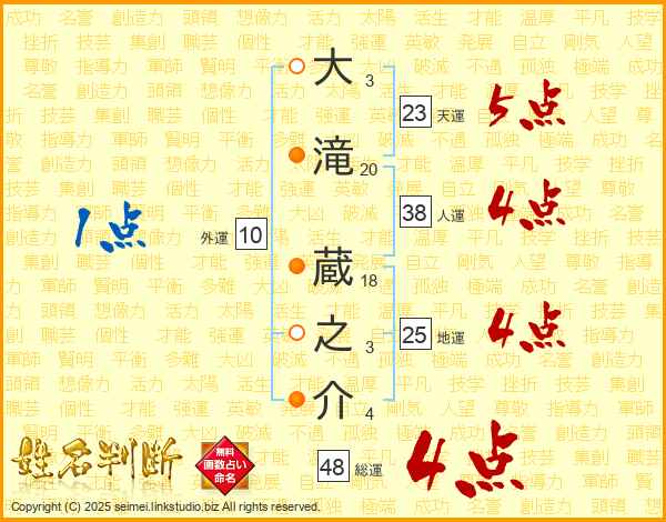 大(3画)滝(20画) 蔵(18画)之(3画)介(4画)