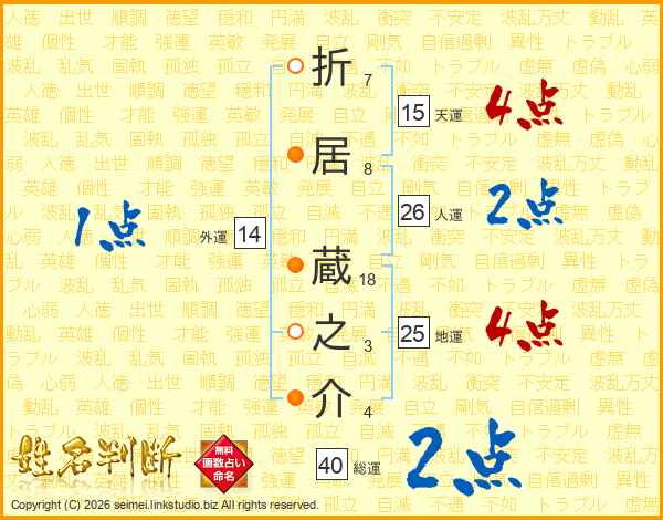 折(7画)居(8画) 蔵(18画)之(3画)介(4画)