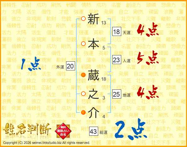 新(13画)本(5画) 蔵(18画)之(3画)介(4画)