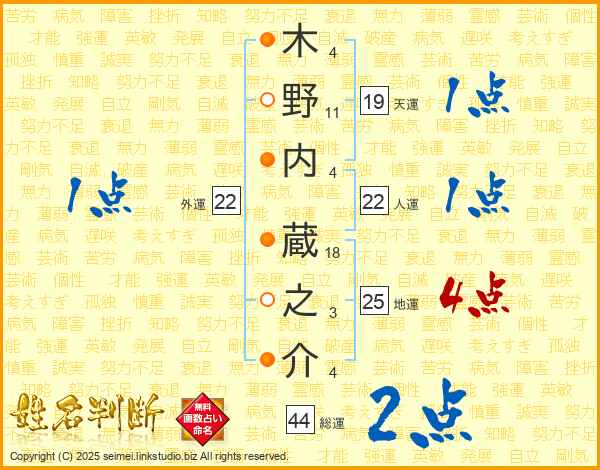 木野内蔵之介さんの総運は44画の2点!