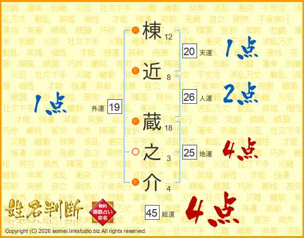 棟近蔵之介さんの総運は45画の4点!