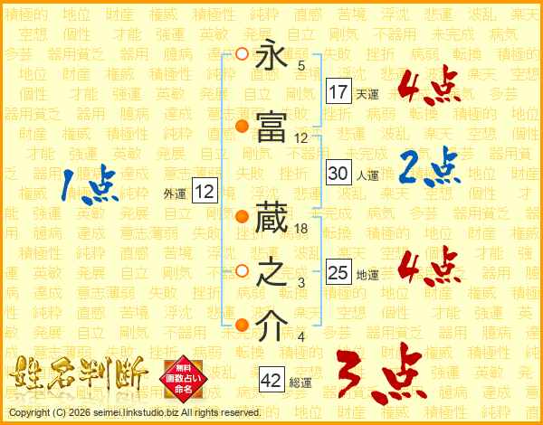 永(5画)富(12画) 蔵(18画)之(3画)介(4画)