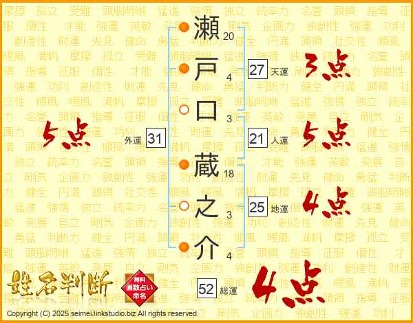 瀬(20画)戸(4画)口(3画) 蔵(18画)之(3画)介(4画)