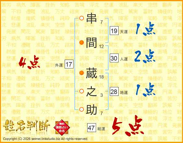 串間蔵之助さんの総運は47画の5点!