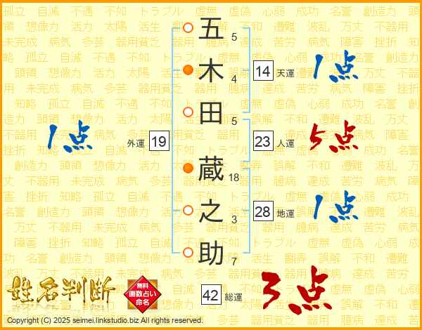 五(5画)木(4画)田(5画) 蔵(18画)之(3画)助(7画)