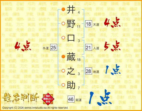 井野口蔵之助さんの天運は18画の4点!