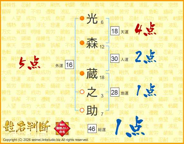 光(6画)森(12画) 蔵(18画)之(3画)助(7画)