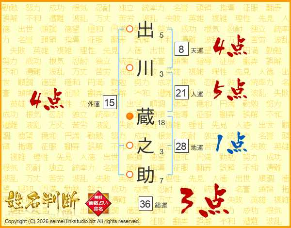 出川蔵之助さんの総運は36画の3点!