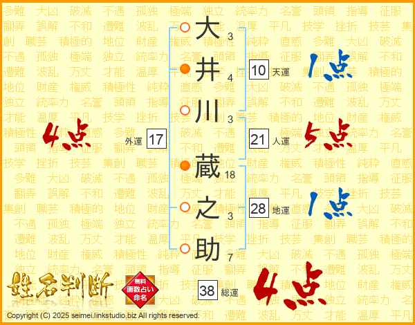 大(3画)井(4画)川(3画) 蔵(18画)之(3画)助(7画)