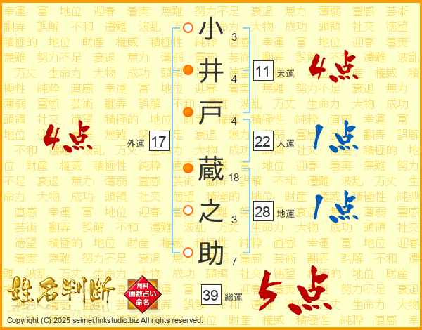 小(3画)井(4画)戸(4画) 蔵(18画)之(3画)助(7画)