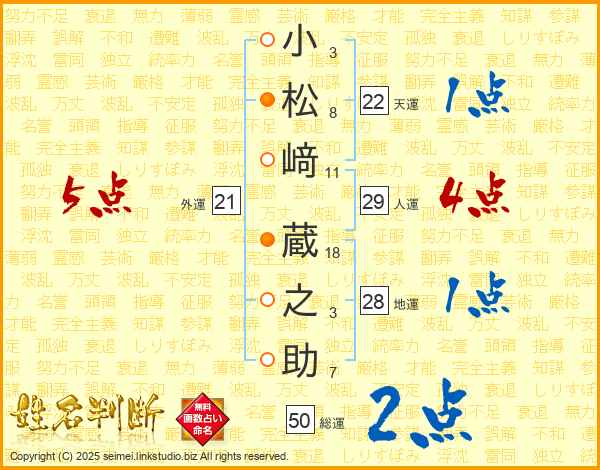 小(3画)松(8画)﨑(11画) 蔵(18画)之(3画)助(7画)