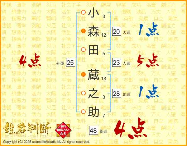 小(3画)森(12画)田(5画) 蔵(18画)之(3画)助(7画)