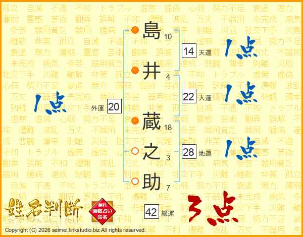 島井蔵之助さんの総運は42画の3点!
