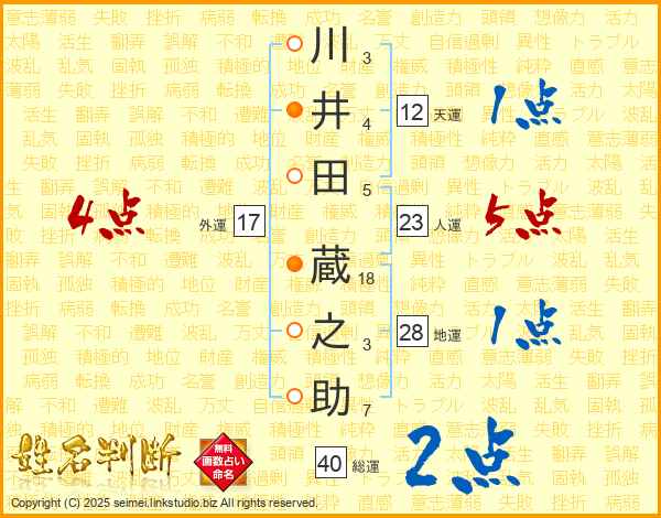川井田蔵之助さんの総運は40画の2点!