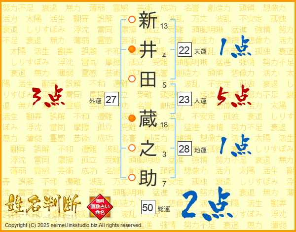 新(13画)井(4画)田(5画) 蔵(18画)之(3画)助(7画)