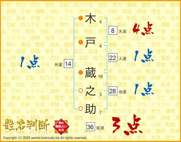木戸蔵之助さんの総運は36画の3点!
