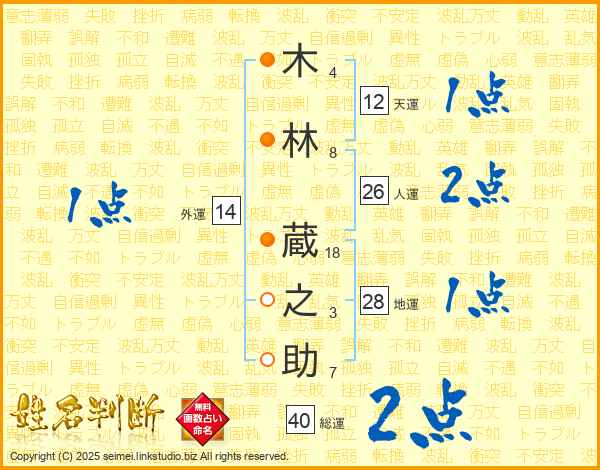 木(4画)林(8画) 蔵(18画)之(3画)助(7画)