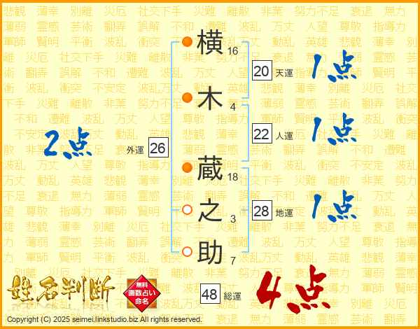 横(16画)木(4画) 蔵(18画)之(3画)助(7画)