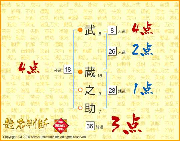 武(8画) 蔵(18画)之(3画)助(7画)
