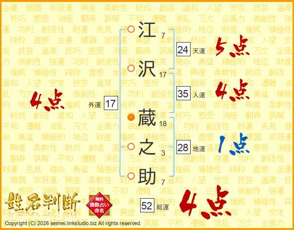 江(7画)沢(17画) 蔵(18画)之(3画)助(7画)
