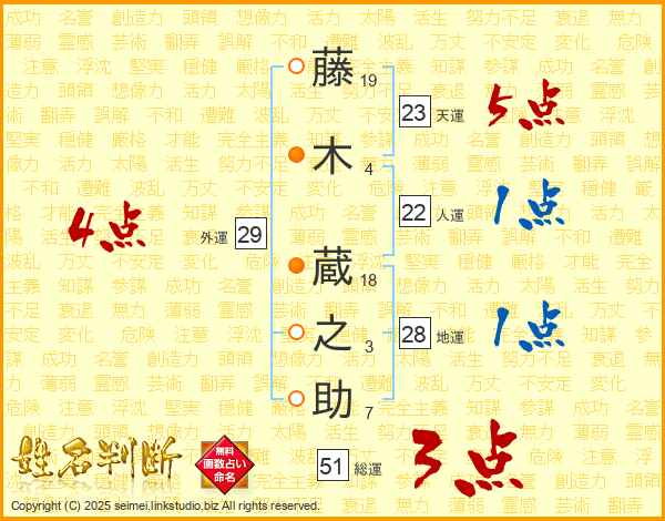 藤(19画)木(4画) 蔵(18画)之(3画)助(7画)