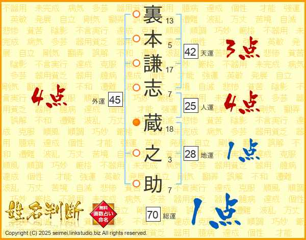 裏本謙志蔵之助さんの人運は25画の4点!