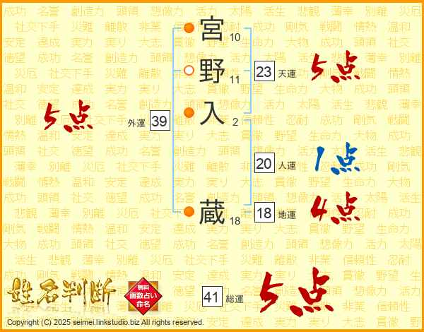 宮(10画)野(11画)入(2画) 蔵(18画)
