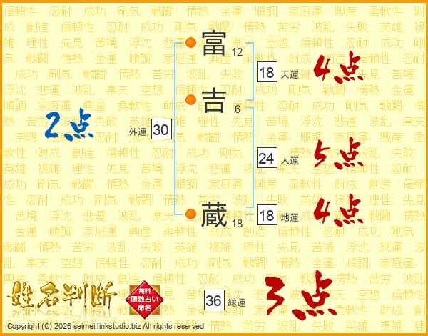 富吉蔵さんの総運は36画の3点!