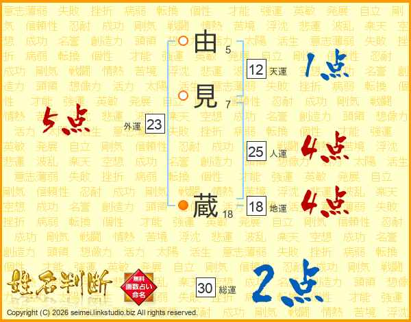 由見蔵さんの総運は30画の2点!