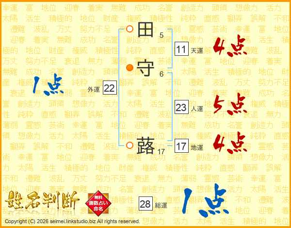 田守蕗さんの総運は28画の1点!