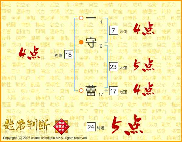 一守蕾さんの外運は18画の4点!