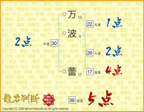 万波蕾さんの総運は39画の5点!
