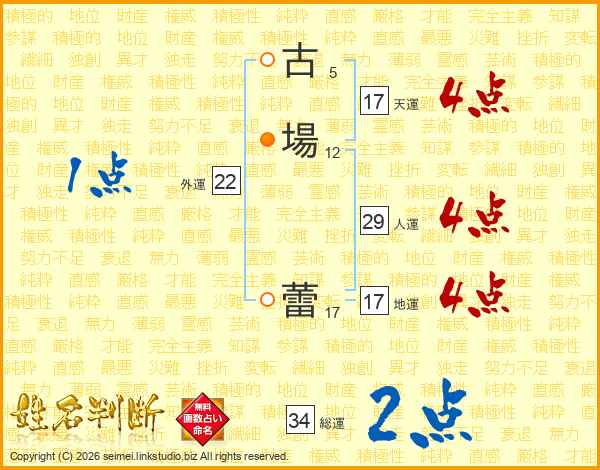 古場蕾さんの総運は34画の2点!