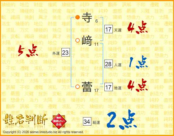 寺﨑蕾さんの天運は17画の4点!