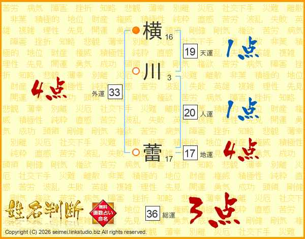 横川蕾さんの外運は33画の4点!