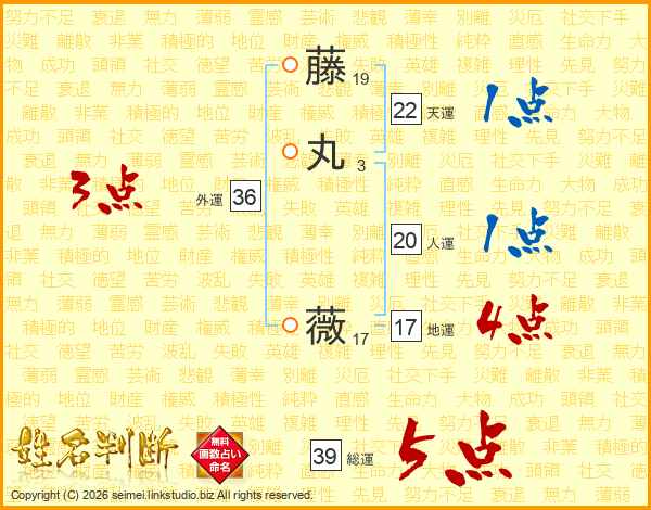 藤丸薇さんの外運は36画の3点!