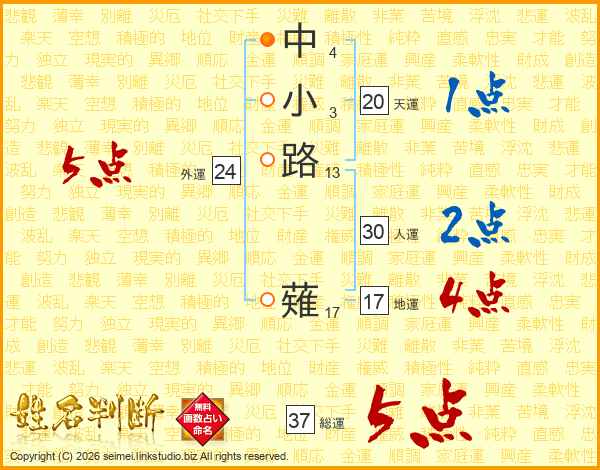中小路薙さんの総運は37画の5点!