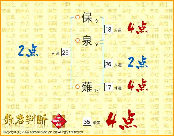 保泉薙さんの総運は35画の4点!