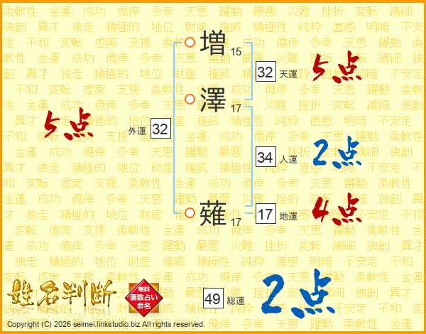 増澤薙さんの総運は49画の2点!