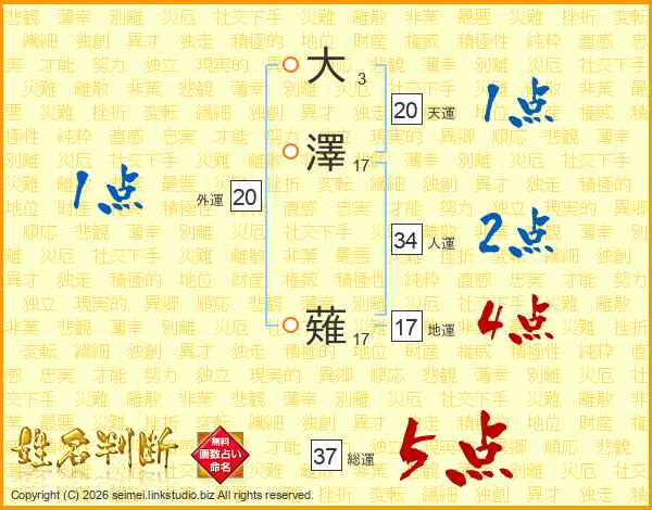 大澤薙さんの総運は37画の5点!
