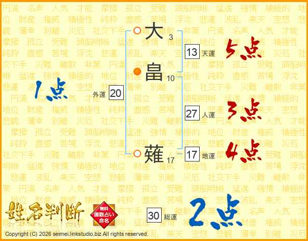 大畠薙さんの総運は30画の2点!