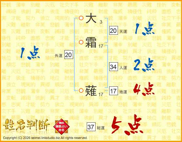大霜薙さんの総運は37画の5点!