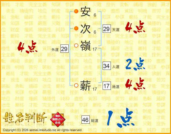 安(6画)次(6画)嶺(17画)  薪(17画)