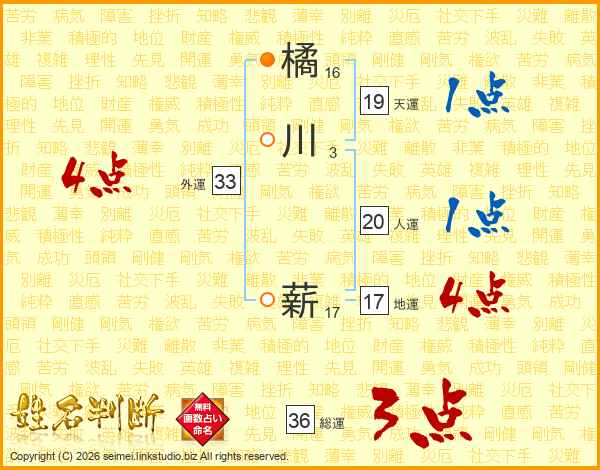 橘川薪さんの総運は36画の3点!