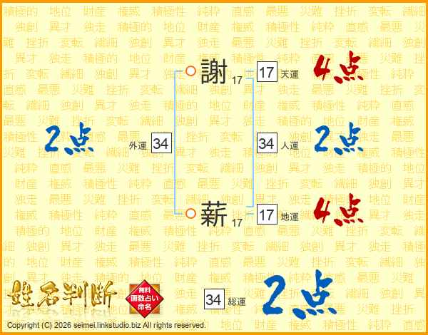 謝薪さんの天運は17画の4点